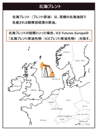 北海ブレント(ブレント原油)は「ロンドン原油」とも呼ばれ、英領の北海油田で生産される軽質低硫黄の原油をいいます。北海油田とは、北海にある150余りの海底油田・ガス油田の総称であり、主な消費地は欧州となっています。また、北海ブレントの定義は時代と共に変遷するが、現在はブレント油田、フォーティーズ油田、オゼバーグ油田およびエコーフィスク油田の4つの油田で採取される油田と定義されており、総称して「BFOE」と呼ばれています。