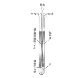 試料を一定温度で一定時間加熱し、空気または酸素を圧入したり、触媒(酸化作用を進める物質)を用いたりして強制酸化し、試験前後の油の性状、触媒の外観などの変化で表す。